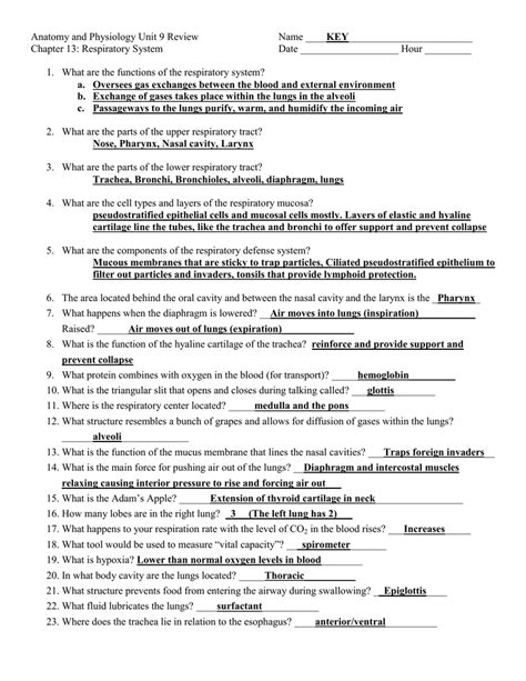 Read Chapter 13 The Respiratory System Anatomy Physiology Answer Key Kindle Editon
